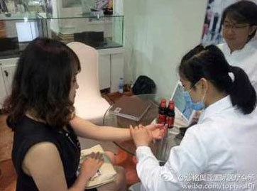 展會現場,觀眾對私人醫(yī)生服務倍感興趣,并由私人醫(yī)生現場把脈展會現場,咨詢問診。